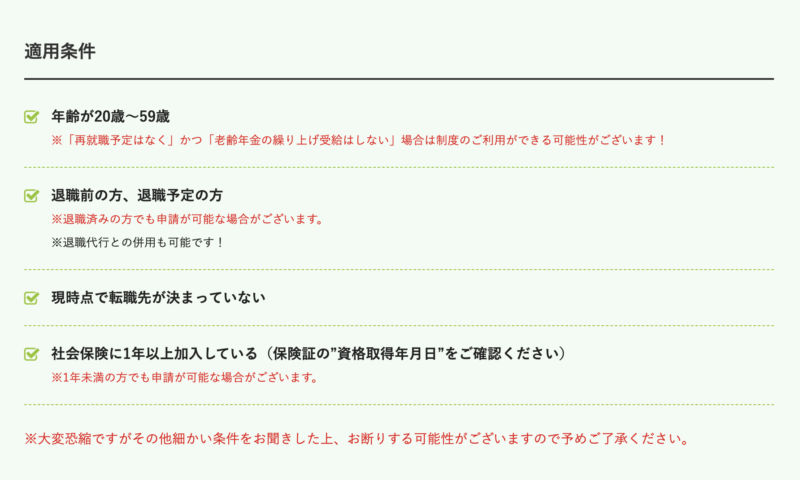 | 特徴 | 退職後の給付金受給を支援する日本初の「給付金特化型退職サポート」サービス |